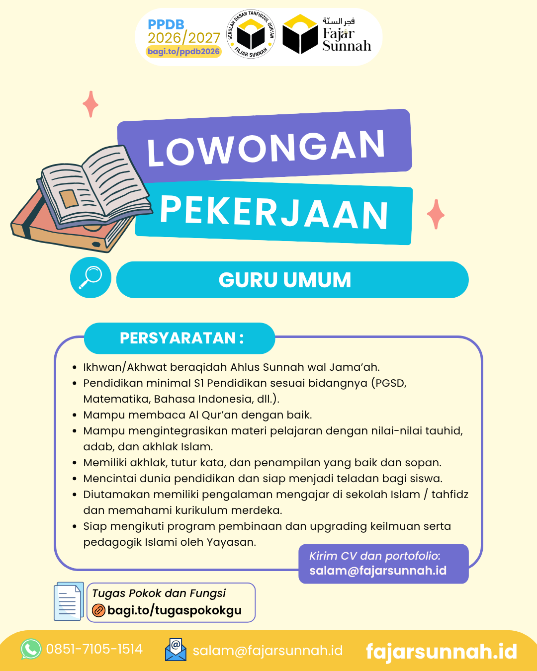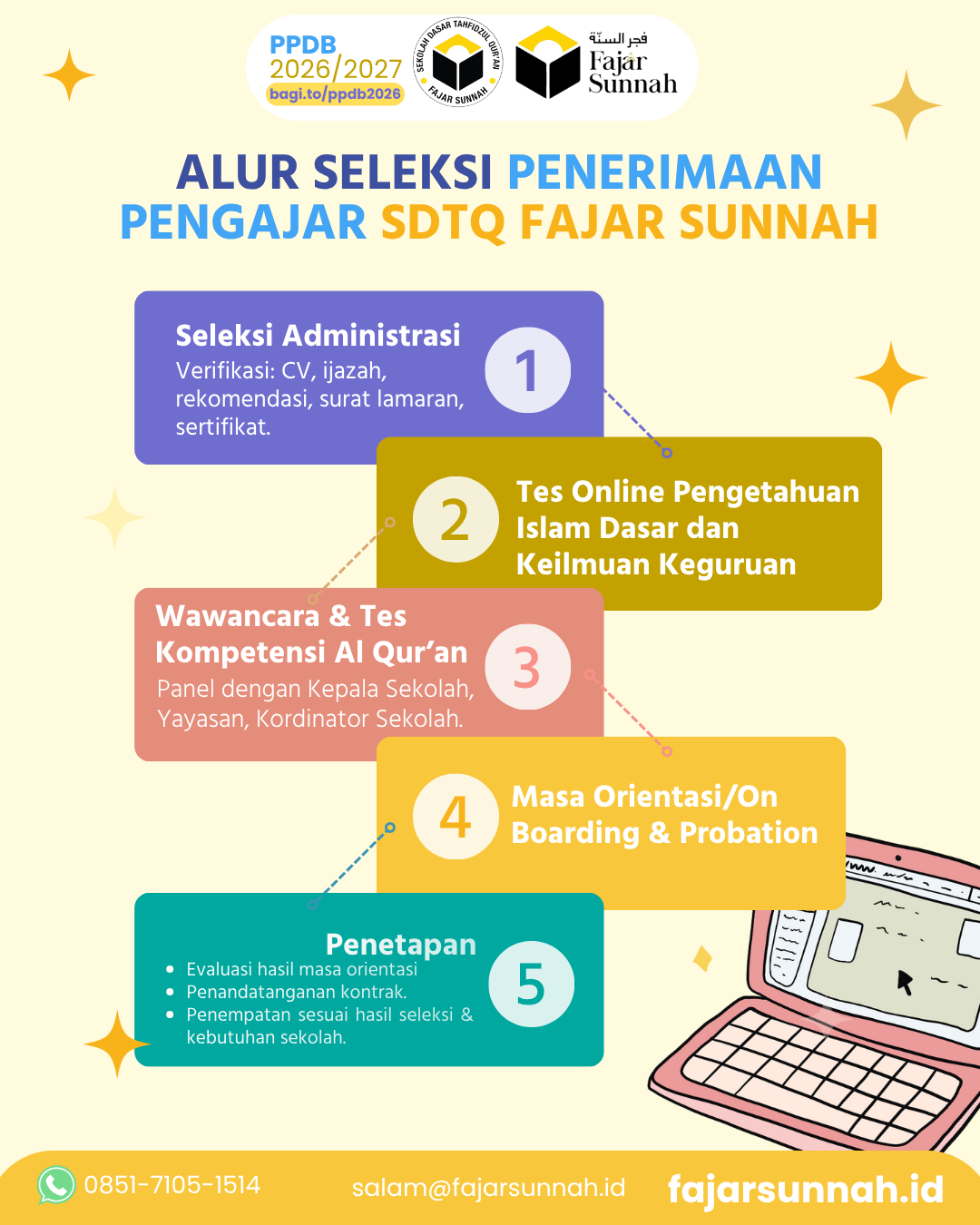 📋 TAHAPAN REKRUTMEN GURU SDTQ FAJAR SUNNAH Bismillah… 🌱 Setiap [...]