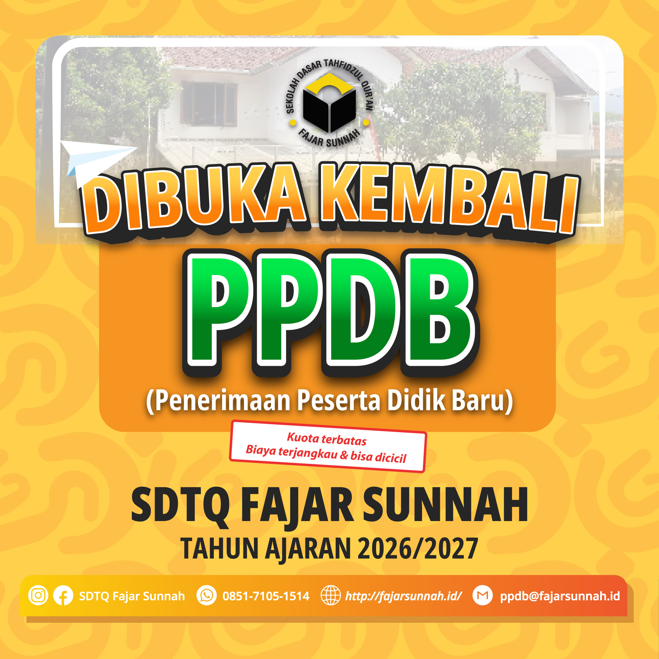Alhamdulillah, Penerimaan Peserta Didik Baru (PPDB) SD Tahfidzul Qur’an Fajar Sunnah Lembang Tahun Ajaran 2026/2027 resmi dibuka!